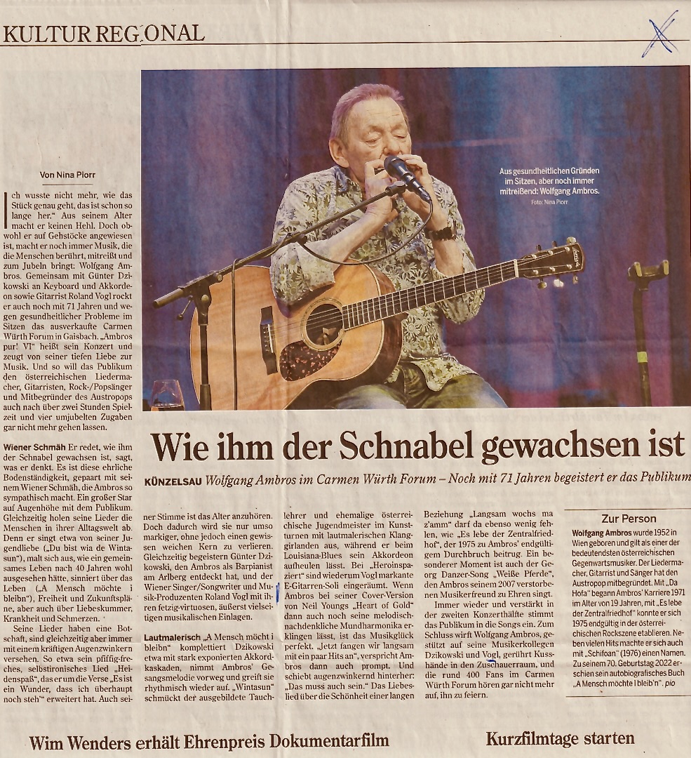 Diesen Konzertbericht vom ausverkauften Konzert im Carmen-Würth-Forum (D) wollen wir Euch nicht vorenthalten. Er ist in der Heilbronner Stimme erschienen.